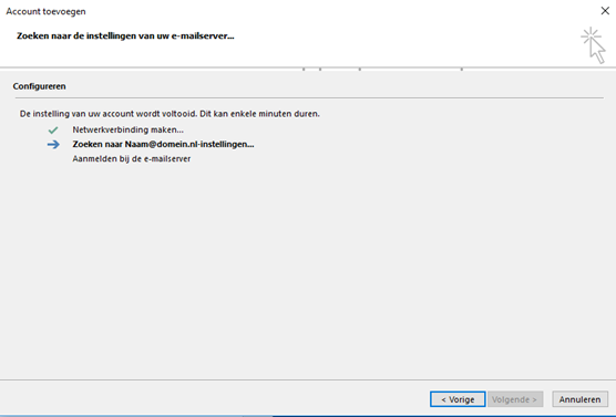 Hierna word al bent u klaar met het instellen en wordt uw email automatisch gesynchroniseerd in Outlook. U hoeft hier verder niks meer te doen.
